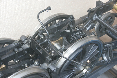 本体にボイラーを載せる前に、ブレーキシリンダーに接続する配管を取り付けておく。断熱テープを巻いている太い管が蒸気管で、細いのは注油管である。