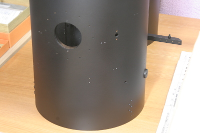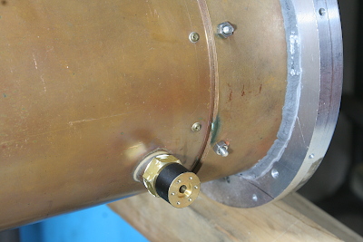 缶胴の右前方に、缶逆止弁取り付け用のフランジを取り付ける。円柱の側面部はボイラー覆いの外に露出するので、黒く塗装している。