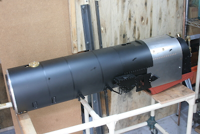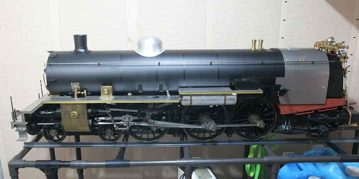 ボイラーの火室下にダミー火室を取り付け、缶胴の前からボイラー覆いを入れ、ボイラーバンドで締め付けて固定する。この時点で、加減弁と水面計は取り付け済み。