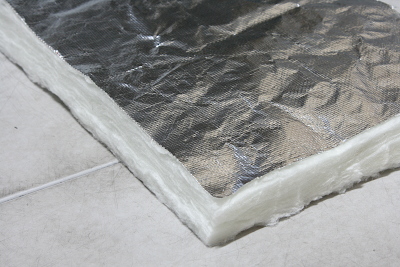 ボイラーとボイラー覆いの間は断熱材を詰めるが、かなり隙間があるので、厚さ25mmのグラスウールを巻くことにした。工場配管用の断熱材であり、それなりの保温効果が期待できるだろう。