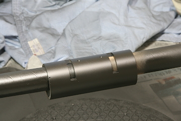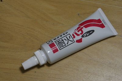 煙室周辺の隙間は、耐火パテを用いてシールをした。上の写真でアルミリングと延長胴の間に見える灰色の塗り物がこのパテである。その他、煙室後半下部の段差部分の隙間もこのパテで埋めた。