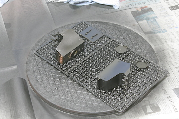 修復のため新しいウレタンスプレー缶を開封(混合)したので、使い切らなければならない。当初の予定外の塗装を追加した。砂箱関係の部品と、給水温め器の部品の塗装を行った。