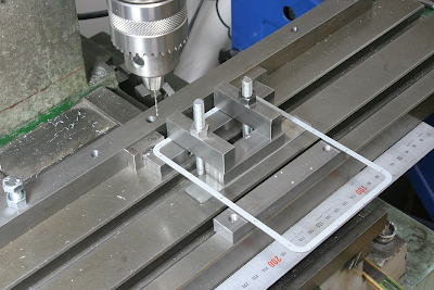 The window frames were temporarily fastened from the inside with M1.7 screws. The photo shows the pilot holes being drilled for tapping in the side window frame. The same operation was carried out on the rear window frames.