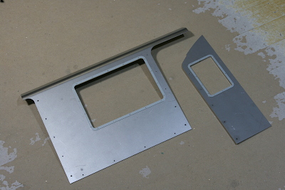 Since windows will be installed, there must be no protrusions on the inside of the window openings in the side sheets. Special low-profile head screws were used, with the heads sunk flush into the inside surface of the side sheets. The counterbores were cut using an end mill.
