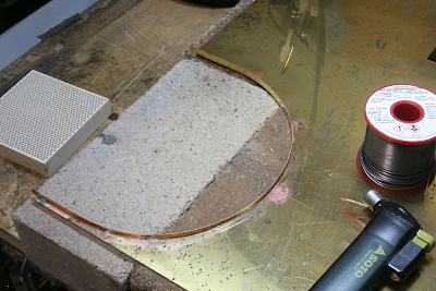This shows the window frames mounted on the side sheets and the rear sheet. In the final stage, solder will be flowed in and the screw tips filed off to eliminate any visible traces.